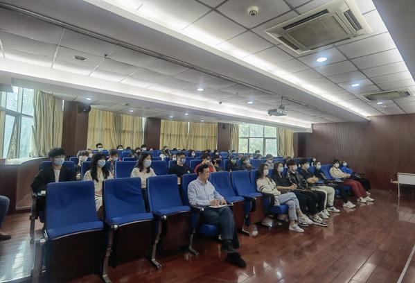 接着,谢煊分析了大湾区建设给粤港澳青年带来的发展机遇以及青年学生应有的使命担当。粤港澳大湾区凭借优良的基础设施、庞大的经济总量、高水平的教育体系、湾区内部城市创新创造能力等优势条件,成为吸引年轻人就业、创业的前沿阵地。在鼓励同学们积极抓住机遇的同时,他也提出了三点期望:一是要树立坚定的理想信念和科学的价值观念,勇做走在时代前列的奋进者、开拓者和奉献者;二是要学好本领,强化自身能力,以积极的精神面貌投入到学习中;三是在经营好自己的学习生活的基础上,更多地服务社会,造福人民,用实际行动践行青年人的责任与担当。