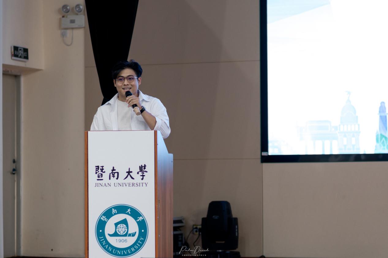华文教育系学长代表、第十八届班联会主席赖定安同学代表2020级学生对领导、老师们表示由衷的感谢,也向各位学弟学妹表示热烈欢迎。他期待用大四这最后一年的时光去补足疫情期间的种种遗憾,带上四年的热情重新出发,希望在毕业后,能带着收获的知识、能力和满腔的热诚到广袤的世界去,让华文教育的鲜花开满五洲四海的土地。他也表达了对学弟学妹们的祝愿:愿学弟学妹们的大学生活充实且美满;愿学弟学妹们能够成为一片片葱葱绿叶,为华文教育这棵巨树吸收养分,使其愈发宏伟、壮大;还愿学弟学妹们在困境时“残雪压枝,报之以歌犹有局”,逆境时“一蓑烟雨,报之以笑任平生”,活出灿烂的自己。