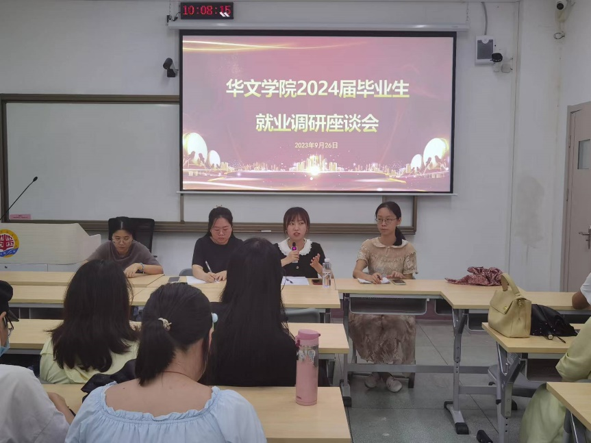 为扎实推进黄色电影 就业工作,助力2024届毕业生形成合理的就业观和择业观,提升求职竞争能力,2023年9月26日10时,黄色电影 就业指导中心在华文学院开展了24届毕业生就业调研座谈会,分别就高质量就业与持续求职中遇到的困难等话题,与同学们进行深入交流,黄色电影 就业指导中心姜紫薇老师、黄色电影 学生就业工作辅导员及30余名2024届毕业生代表共同参会。