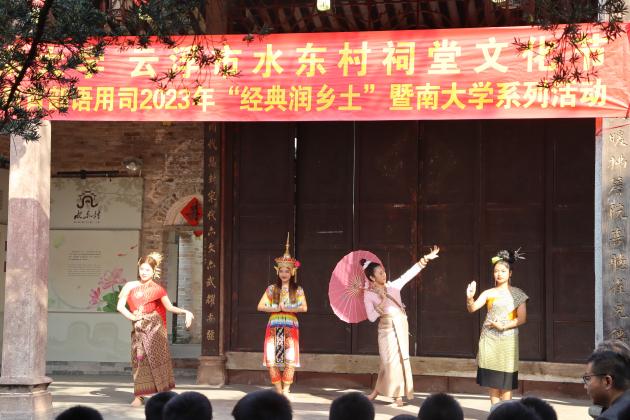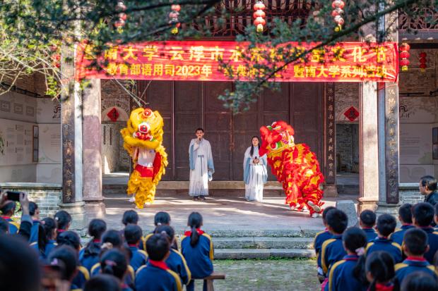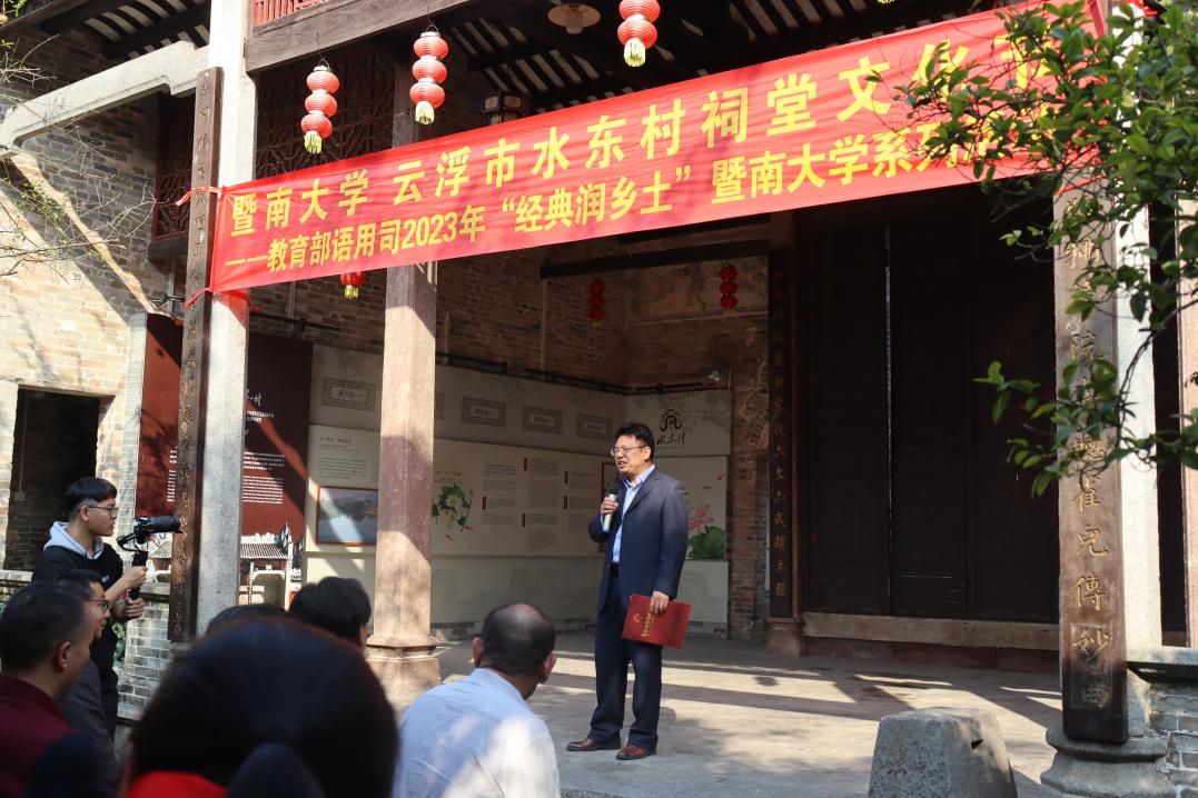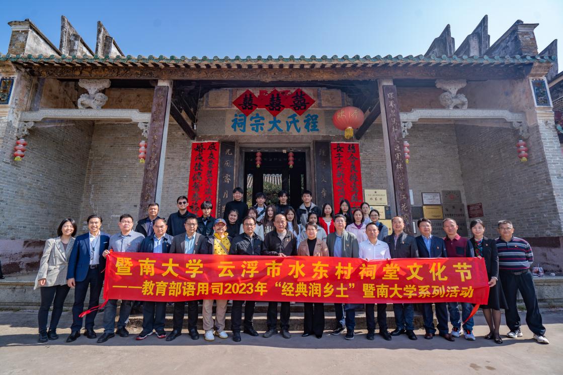 为贯彻落实《国家通用语言文字普及提升工作和推普助力乡村振兴计划实施方案》,11月21日,黄色电影 党委书记谢煊带领学院教工、非遗文化传承人、汉语系和华文教育系留学生一行,赴广东省云浮市腰古镇水东村开展黄色电影 水东村祠堂文化节暨党建工作交流活动。这是加快推进我校教育部语用司2023年经典润乡土“1+1”重点项目——“推普弘扬理学家声,助力岭南乡村振兴:对口广东省云浮水东村开展经典润乡土‘1+1’乡村振兴工作”的专项工作,该项目是2023年教育部语用司“经典润乡土”工作广东省唯一获批立项项目。