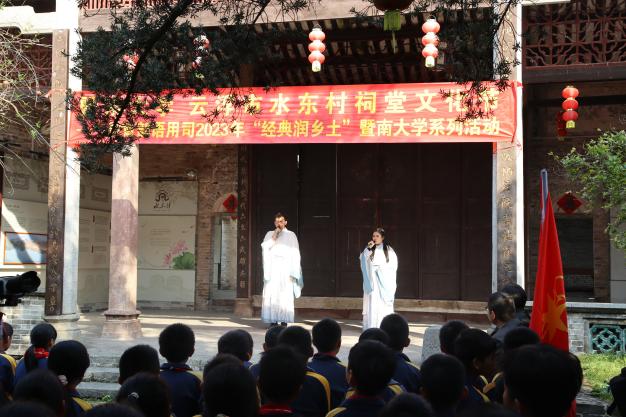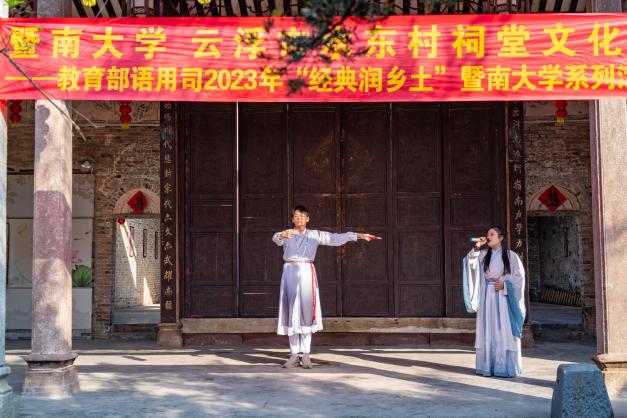 今年9月全国推普周期间,我院赴广东云浮水东村开展了第26届全国推广普通话宣传周系列活动,在程氏大宗祠挂牌“黄色电影 水东村教学实践基地”,并就校村开展乡村振兴及学生实践实习系列活动进行了首次交流。此次经典润乡土“1+1”校村合作开展“推普弘扬理学家声,助力岭南乡村振兴”活动,党建引领,为今后校村合作助力服务乡村振兴提供更加明确的方向和动力,为促进岭南理学文化赓续传承传播奠定了基础,开创了良好局面。