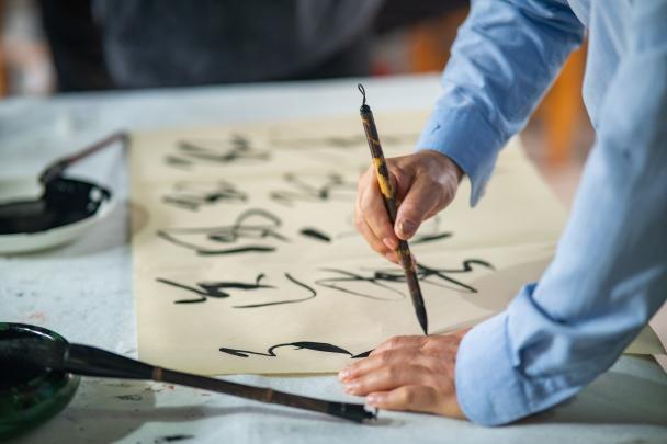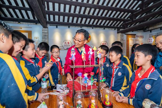 祠堂文化节现场特设了手指画、剪纸、中国书法、捏面人、吹糖人、草编6个非遗展位。孩子们和我院30多名留学生一道参与制作体验,分享品味中华文化的经典魅力,欢笑声、欢呼声、惊叹声不绝于耳。孩子们与留学生大哥哥大姐姐们用汉语和英语进行简单对话,现场气氛热烈,欢快祥和,多元与经典的语言文化和谐交流交融,大家流连忘返,纷纷留下联系方式,相约下次再见。