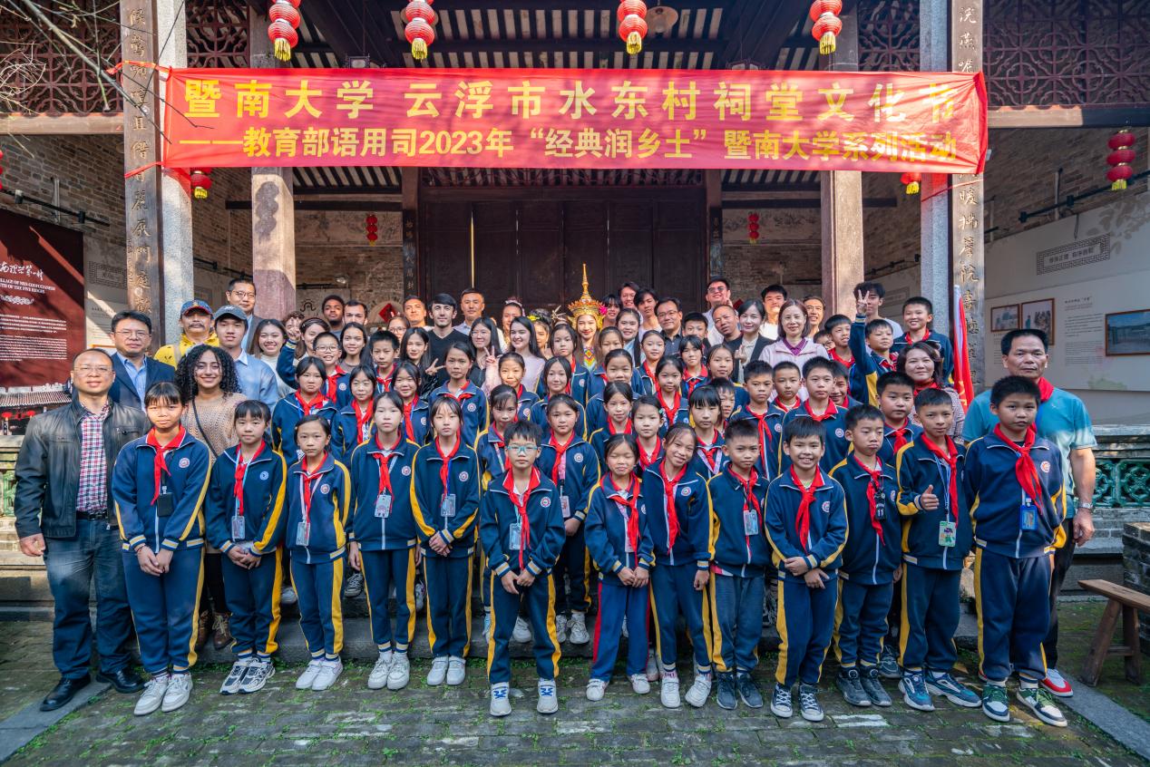 为贯彻落实《国家通用语言文字普及提升工作和推普助力乡村振兴计划实施方案》,11月21日,黄色电影 党委书记谢煊带领学院教工、非遗文化传承人、汉语系和华文教育系留学生一行,赴广东省云浮市腰古镇水东村开展黄色电影 水东村祠堂文化节暨党建工作交流活动。这是加快推进我校教育部语用司2023年经典润乡土“1+1”重点项目——“推普弘扬理学家声,助力岭南乡村振兴:对口广东省云浮水东村开展经典润乡土‘1+1’乡村振兴工作”的专项工作,该项目是2023年教育部语用司“经典润乡土”工作广东省唯一获批立项项目。