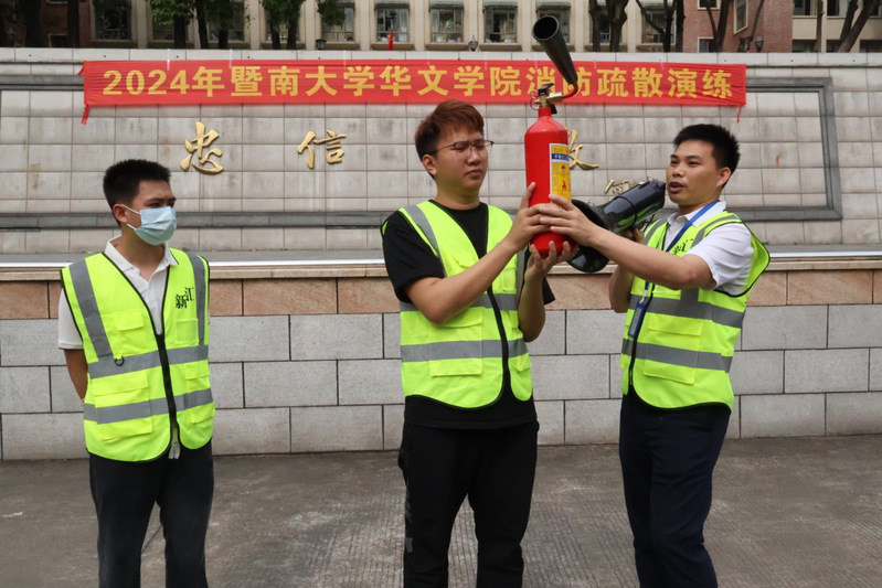在学院中心广场。负责人现场讲演并演示了防烟面罩及不同种类灭火器的使用方法。由全体参与演练人员自由尝试、学习使用防火灭火器材,切实增强应急灭火能力。