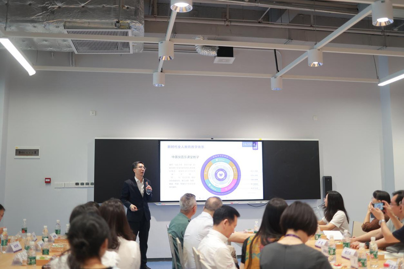 中黄教育集团李康华则详细介绍了集团的教学体系、办学使命、未来愿景、实践成果及岗位用人需求,在座师生认真聆听,积极讨论发言,借鉴先进的教育模式。