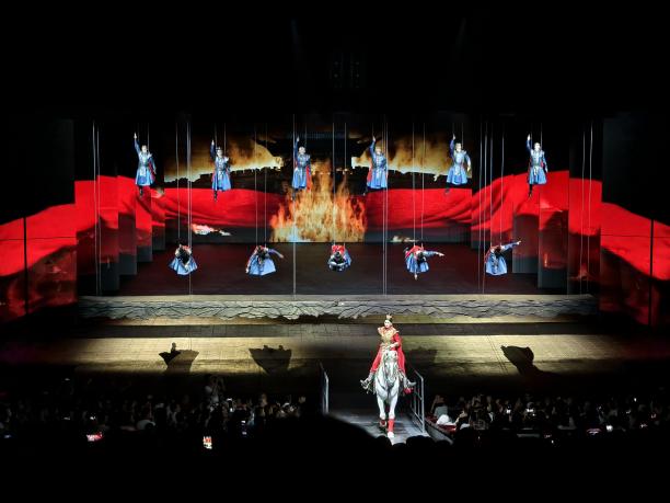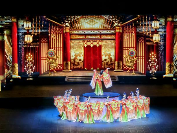 最后,教职工们共同欣赏了景区的核心演出节目——《广东千古情》,该演出运用了天马行空的叙事结构和震撼人心的舞台设计,巧妙地将粤港澳大湾区几千年的历史浓缩其中。观看千古情演出,大家仿佛亲眼见证了广东这片土地上的沧桑巨变,感受到了一代代广东人“敢为人先、敢闯敢拼”的奋斗精神,也激励着大家在未来的工作中更加奋发向前。