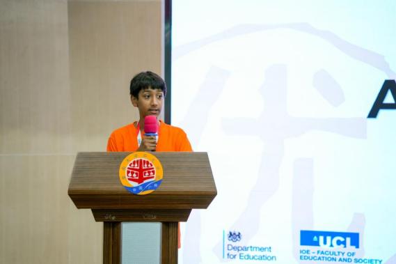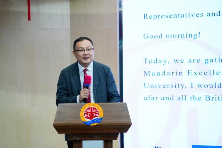 来自英国的学生代表Aril Strathern和来自中国的志愿者代表饶泽霖分别发言。Aril Strathern用中英双语表达了对他中华文化和广州美食的喜爱,流露出对本次研修之旅各项学习活动的兴奋和期待。饶泽霖强调语言学习对提升文化理解、增长智慧和勇气的重要意义。她表示,One world one dream,希望在本次活动中,两国学生能够相互学习、携手进步,创造美好回忆、建立深厚友谊。