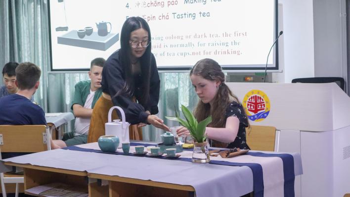 来自英国三所中文培优学校的54名学生和来自中国多所中学的20名中文志愿者分为三个班级参与了包括语言基础和文化体验的9门课程。
