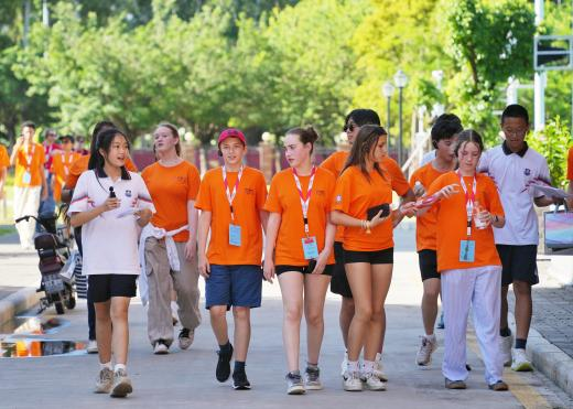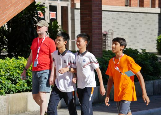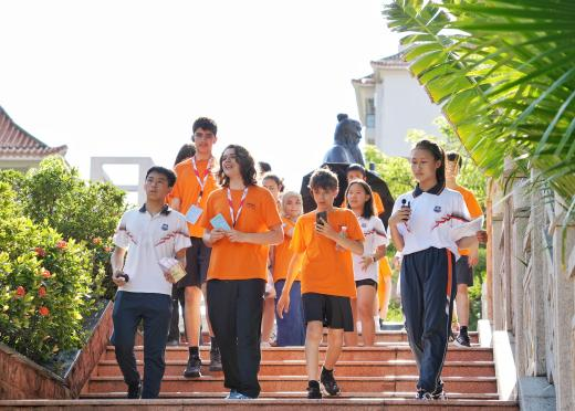图4 英国学员在广州外国语学校学生的引导下参观游览校园