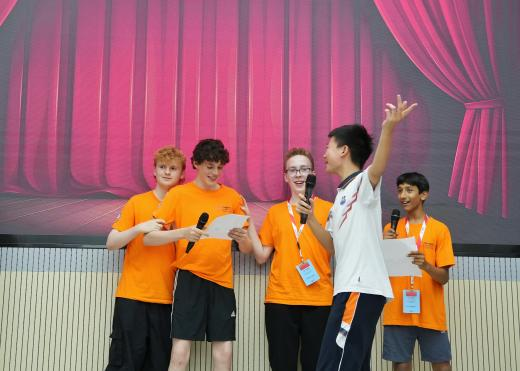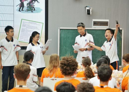 活动伊始,中英学生共同参与了一节妙趣横生的英语课堂。精彩刺激的答题比赛,营造出热烈欢快的现场氛围;生动有趣的情节演绎,彰显出亲密无间的默契合作,引发了阵阵欢笑与掌声。