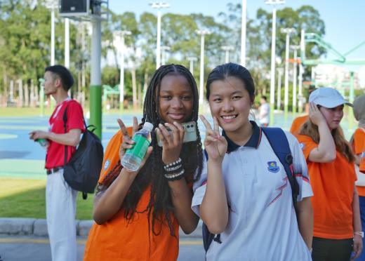 随后,广州外国语学校的两名学生志愿者作为导游带领学员参观游览校园。校园面积宏大、绿意盎然,建筑外观中西合璧,既有中式巧妙精美的脊顶、飞檐、雕花、廊桥,又有西式雄伟典雅的钟楼、拱门、石柱、红砖,引发了学员们的连连赞叹,学员们深刻理解了中华文化“兼收并蓄、开放包容”的鲜明特征。