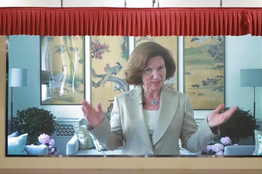 英国驻中国大使吴若兰在视频致辞中肯定了中文培优项目成立以来所获得的非凡成果,表达了对学生们继续学习、不断进步的殷切期待与美好祝愿。她引用中国的古话说道,“学如逆水行舟,不进则退”,希望学生们敢于克服困难、勇于迎接挑战,在中文学习之旅中不懈努力;“书山有路勤为径,学海无涯苦作舟”,相信学生们能够以刻苦提升自我、以勤奋不负韶华。