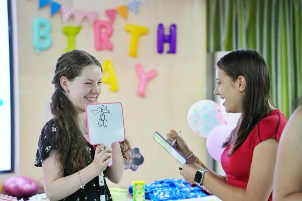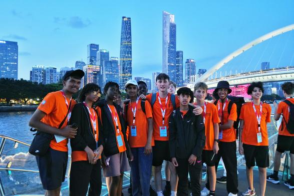 夏令营期间,来华培优学校多次联动广州本地中学,走进中学英语教室,邀请中学生共享生日晚宴。广州外国语学校英语课上,中英学生智慧的火花四溅,思维的碰撞激荡起阵阵热烈掌声与欢笑,展现了“学海无涯,乘势而上”的求知精神;漫步中学校园,中西合璧的建筑风貌,让学员们领略“海纳百川,有容乃大”的中华文化精髓,心灵深处悄然种下理解与尊重的种子。联谊晚会、生日晚宴热闹非凡,两国青年才俊轮番登台,诗词歌赋、器乐舞蹈珠联璧合,演绎了一场精彩的文化交响,恰似“海内存知己,天涯若比邻”的诗意写照,将交流启智,互学互鉴的氛围推向高潮。中英学子以语言为媒,心灵相通,绽放出“和而不同,美美与共”的花朵。