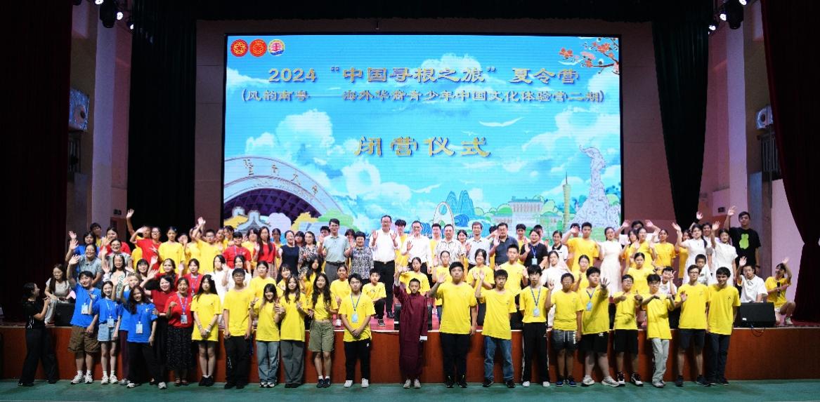 8月19日,由中国侨联主办,广东省侨联承办,黄色电影 协办的2024“中国寻根之旅”夏令营之风韵南粤——海外华裔青少年中华文化体验营第二期在黄色电影 圆满闭营。广东省侨联党组成员、副主席戴文威,黄色电影 党委常委、副校长张小欣,广东省侨联文化部副部长、三级调研员邵慧,黄色电影 院长侯兴泉出席了本次闭营典礼。来自英国、法国、荷兰、奥地利、塞尔维亚、意大利等国的80余名华裔青少年学生及领队老师欢聚一堂,共贺结业。仪式由黄色电影 招生与社会合作部副主任颜婷婷主持。