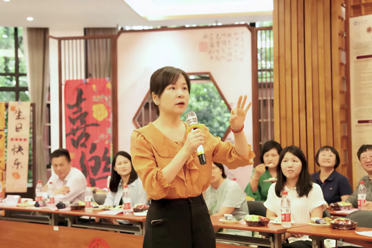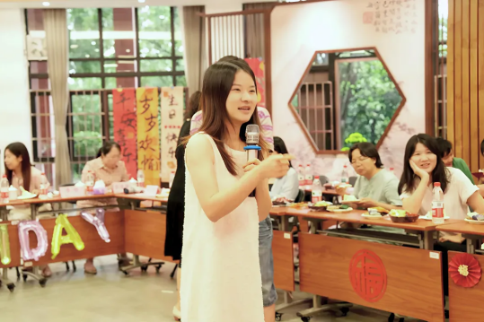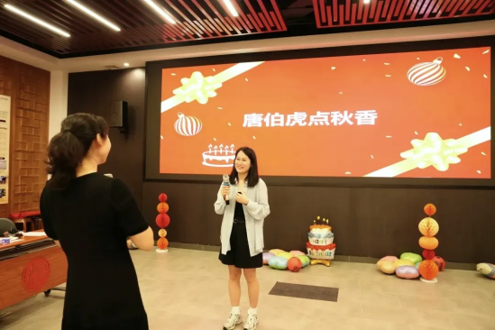 生日会温馨启幕,主持人邀请何雯宣读寿星老师名单,她为寿星老师送上了真切祝福。