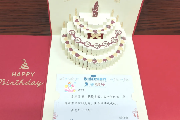 游戏环节后,预科部为寿星们精心准备了满载心意的祝福贺卡。学院领导和老师亲手将这些贺卡送至寿星老师手中并合影留念,每一张贺卡都凝结着学院对老师们日复一日辛勤付出的深深敬意与感谢。接过这份祝福的老师们脸上洋溢着幸福的笑容,这份感动将永远珍藏在心。